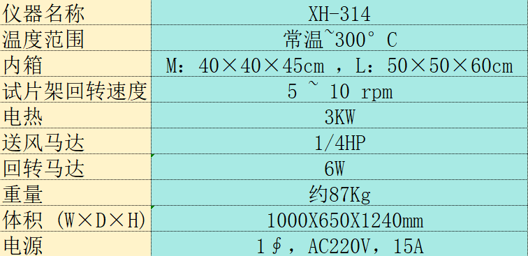 原理:利用可控制的加熱系統(tǒng),使空氣由外部藉鼓風(fēng)機(jī)吸入后得以加熱成熱空氣,并藉由通風(fēng)管將熱空氣散布于工作室中,將利用過的熱空氣由儀器上方的出氣孔排出,以達(dá)到空氣循環(huán)的目的,進(jìn)而促進(jìn)試樣(試片)在熱空氣循環(huán)狀況下在一定時間后達(dá)到老化的目的(試樣物性衰退或變色等現(xiàn)象)。